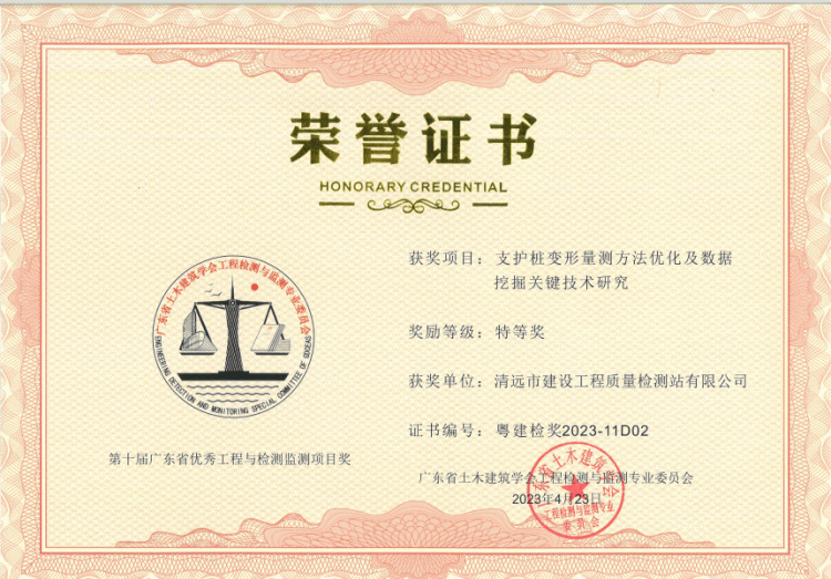 據(jù)悉,“廣東省優(yōu)秀工程與檢測(cè)監(jiān)測(cè)項(xiàng)目獎(jiǎng)” 由廣東省土木建筑學(xué)會(huì)工程檢測(cè)與監(jiān)測(cè)專業(yè)委員會(huì)主辦,是廣東省工程檢測(cè)與監(jiān)測(cè)行業(yè)的省級(jí)獎(jiǎng)項(xiàng),設(shè)有特等獎(jiǎng)、創(chuàng)新獎(jiǎng)和優(yōu)秀獎(jiǎng)等類別,每?jī)赡暝u(píng)選一次,評(píng)選項(xiàng)目主要為巖土工程、建筑結(jié)構(gòu)、環(huán)境與設(shè)備、建筑節(jié)能等各個(gè)領(lǐng)域的創(chuàng)新性檢測(cè)、監(jiān)測(cè)新技術(shù)和新方法,對(duì)推動(dòng)工程建設(shè)行業(yè)技術(shù)發(fā)展具有重大影響。