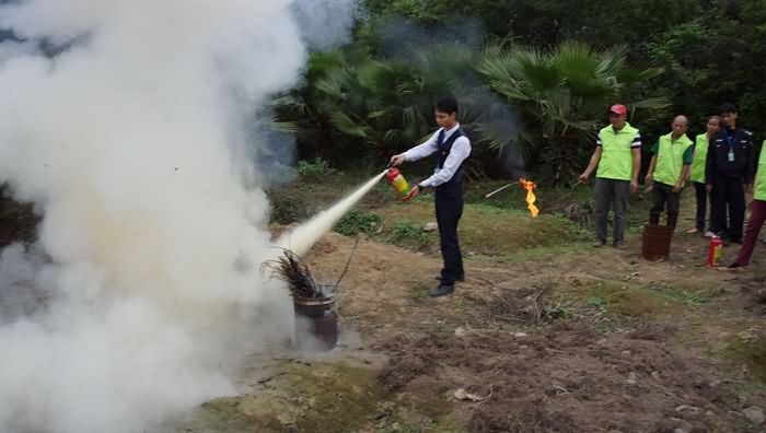 為了切實提高大家的實戰(zhàn)操作能力,安保主管陳登峰現(xiàn)場向大家詳細介紹了如何使用干粉滅火器,并指導(dǎo)大家親自體驗如何撲救火焰。“拔去保險銷,拿住膠皮管,將噴嘴對準火焰根部,壓下壓把……”,大家按照標準輪流上陣,嚴格完成規(guī)定的動作。
