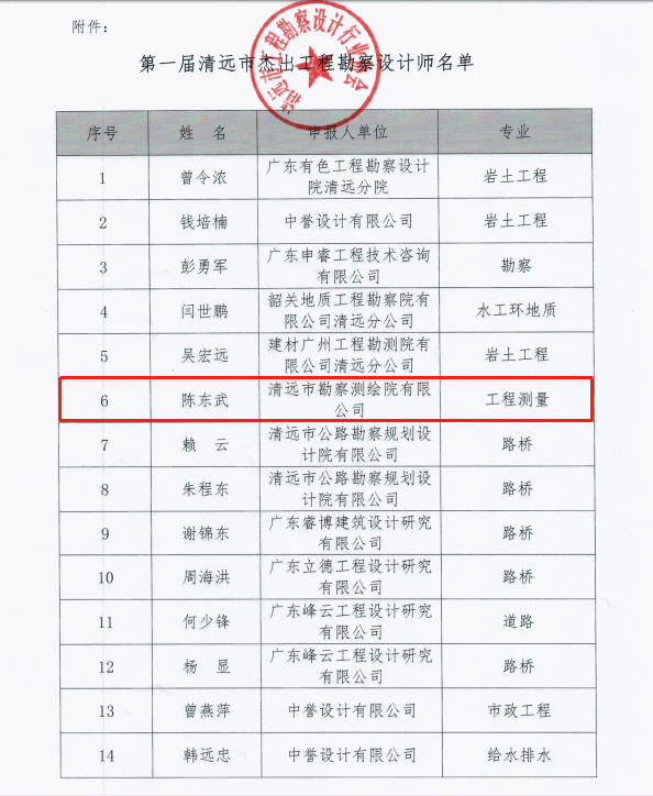 豐收時節(jié),碩果累累,喜訊頻傳。在清遠(yuǎn)市工程勘察設(shè)計行業(yè)協(xié)會開展的“第一屆清遠(yuǎn)市杰出工程勘察設(shè)計師”認(rèn)定工作中,德晟集團(tuán)下屬勘測院公司陳東武同志、粵星咨詢公司郭才昌同志、電力規(guī)劃設(shè)計院公司羅九根同志、城鄉(xiāng)規(guī)劃院公司巫先耀同志及陳健俊同志等5人喜獲榮耀。