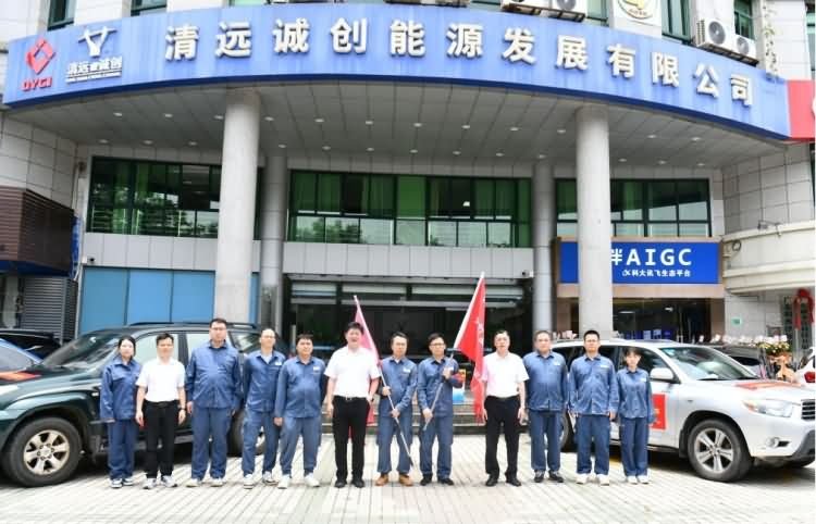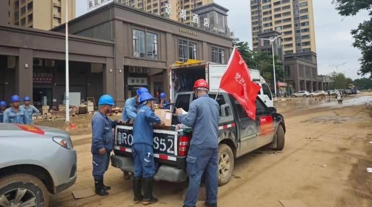 6月19日,誠(chéng)創(chuàng)公司黨委為搶修復(fù)電隊(duì)伍出發(fā)前授旗