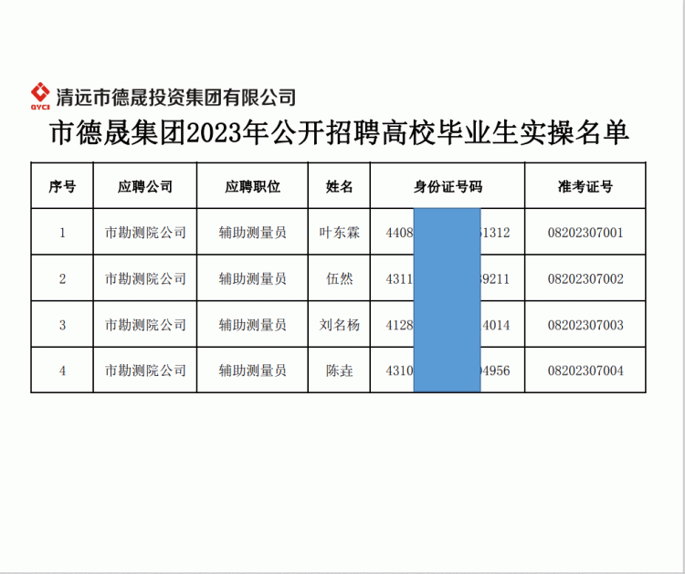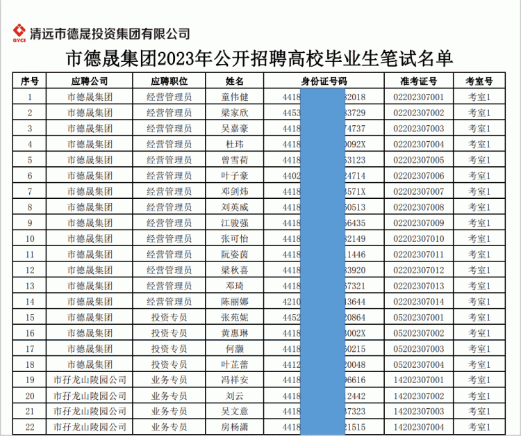 清遠(yuǎn)市德晟投資集團(tuán)有限公司2023年應(yīng)屆高校畢業(yè)生招聘擬錄用公示(第一批)
