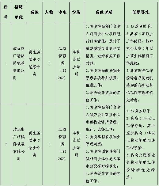 清遠(yuǎn)市廣清城際軌道有限公司2024年公開招聘兩名勞務(wù)派遣工作人員的公告